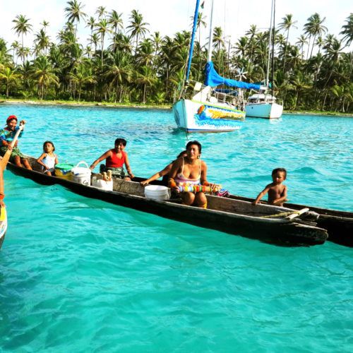 The archipelago of San Blas in Panama, also called archipelago of Mulatas, is a set of 365 small islands, out of which only 80 are inhabited. This is the territory of the Indians Guna Yala, as well as the whole coast opposite the islands. Those people are fishermen and hunters, they tend to live in harmony with nature in a healthy way (there are exceptions). Also they are generally educated as they have schools. All the men can speak Spanish. Women are more protective of their traditions (weaving, crafts with pearls…). They believe in one God called Ibe Orgun.